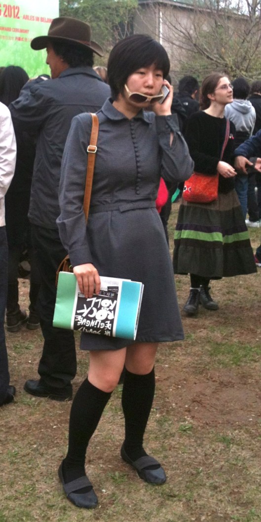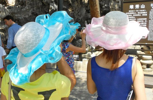 The « Contrasts » to my beloved FIB are all over the city. For real. This is how the Chinese ladies really dress. Their dubious sense of style dominate the landscape and they come thick and fast dressed in the most garish prints, materials and color associations. Most days I choose to ignore them while ducking them from my bicycle, dressed like Ninjas from outer space, face covered, arms protected by these odd « shower hats » half-sleeved and I concentrate on finding Beauty, Grace and Style.