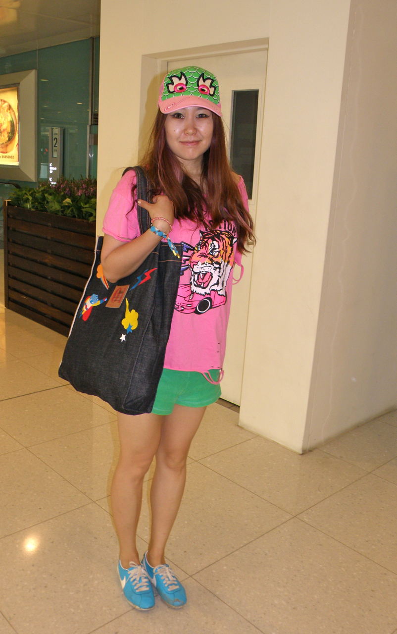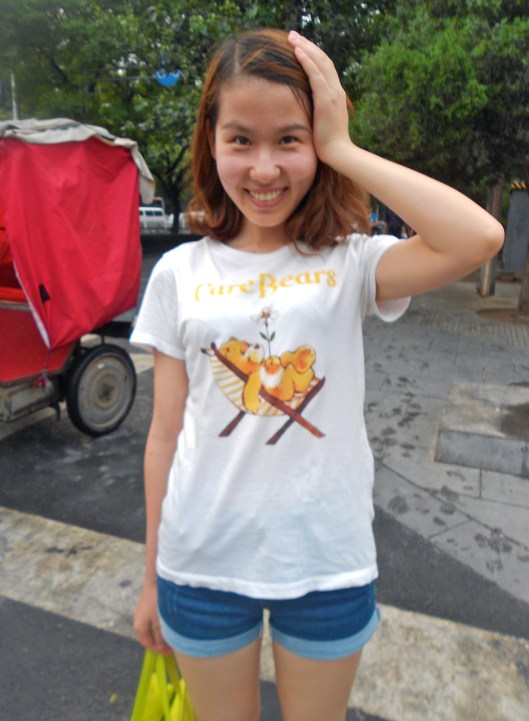 (Kě’ài/可爱) Les robes et tops de couleurs, formes ou imprimés plus improbables les uns que les autres sont dans toutes les rues. Certains sont plus discrets comme le gros carton (authentique ou contrefaits) cet été de l’imprimé Bambi de chez Prada, ou celui des oiseaux de Marc Jacobs. Mais en général la tendance est encore plus enfantine: ‘Hello Kitty’, ‘Mickey’, des animaux imprimés, chatons, hiboux, chiots, oursons, papillons, souris, petits lapins etc.… et évidement l’omniprésent Panda sans compter tous les classiques des cartes Hallmarks: arc-en-ciel, palmiers, étoiles, paillettes, licornes et princesses dansent et tiennent des ballons sur les t-shirts, sacs, robes ou jupettes.