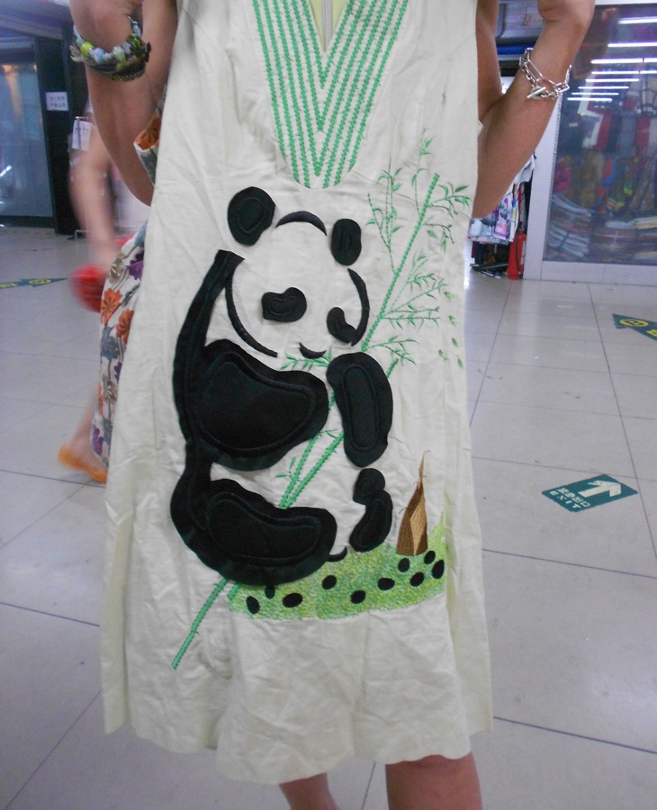 Pandas are worshiped in China. Chinese girls love to wear printed animals on their clothes, the cuter the better, and none are more visible than pandas. Everywhere. From Chic to Cheap. Straight to the FIB’s heart: