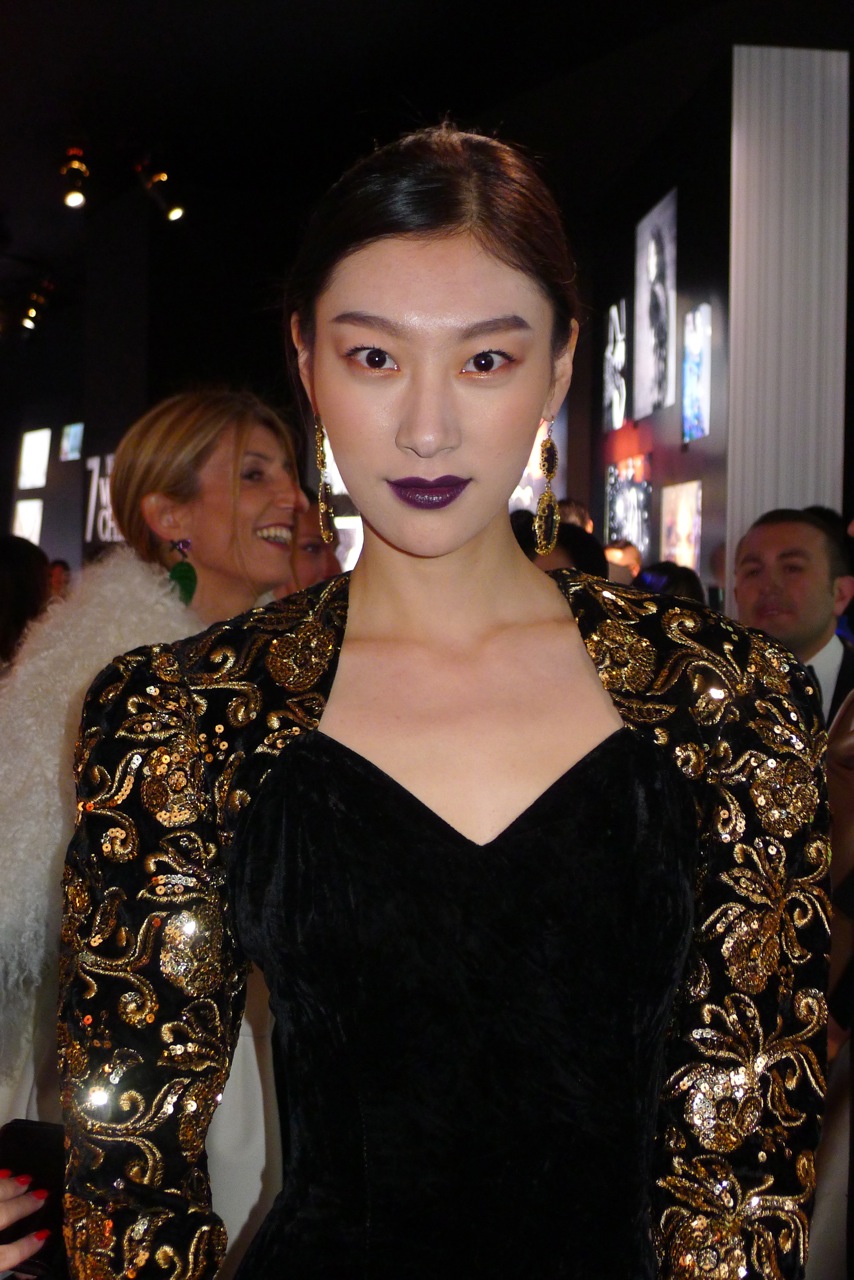 Zhang Shu Yang is a Supermodel, she won Asia’s largest Supermodel contest in 2008 and never looked back. I loved her dress! She carried off with gusto her Vintage 1980’s velvet mutton sleeves sequin and velvet dress she had bought in a Brooklyn Vintage shop like it was made for her last week in Couture and that in a crowd where private jets and limos are the only mode of transportation. Amazing. Her shoes were equally perfectly chosen and fun. Absolutely lovely.