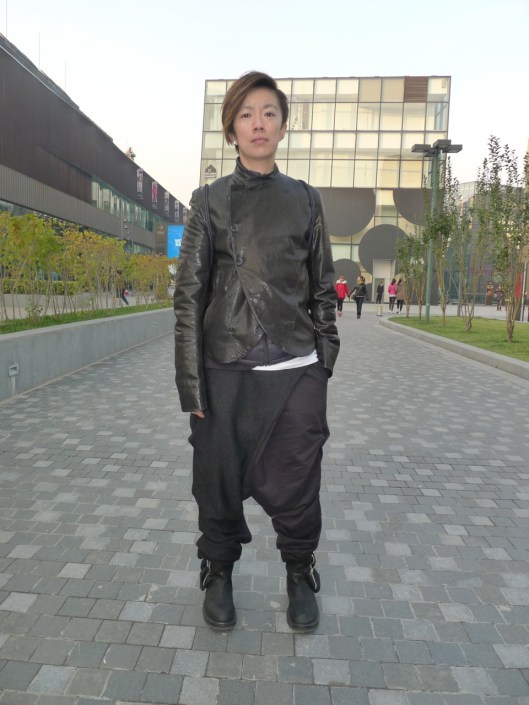 Les Chinoises en général préferent leurs jupes courtes et leurs talons hauts, alors la surprise de croiser a Sanlitun Nord une belle fille dans une tenue avant-garde Belge. Elle etait surprise que je sache que sa veste etait de Ann Demeulemeester. Moi de la voir dans cette tenue. Ca change.